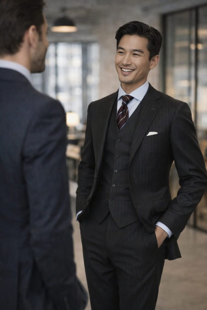 ▼ 銀座ヴェスタで「自分だけの一着」を相談する ヴェスタでは、単にサイズを測るだけでなく、「今のあなたのライフスタイルに、どんなスーツが必要か」を一緒に整理することから始めます。