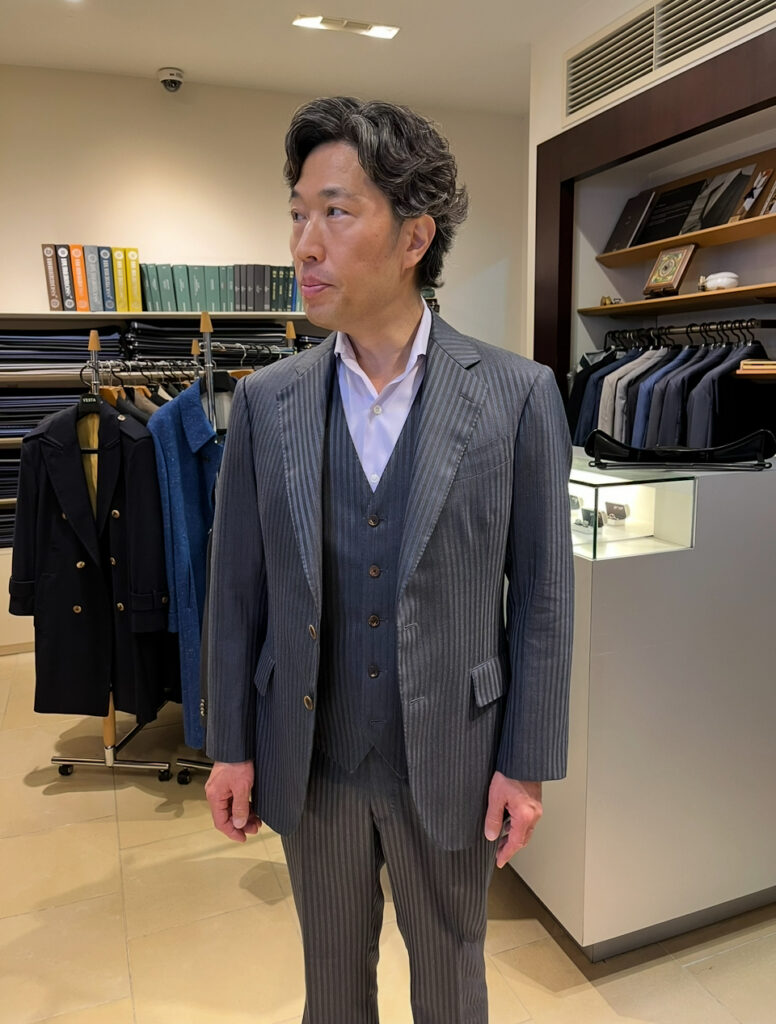 こうした会話を味わいながら、“仕立ての奥深さ”に興味を持たれる姿を見ると、本物のスーツを求める大人の知性と感性に触れる思いがします。