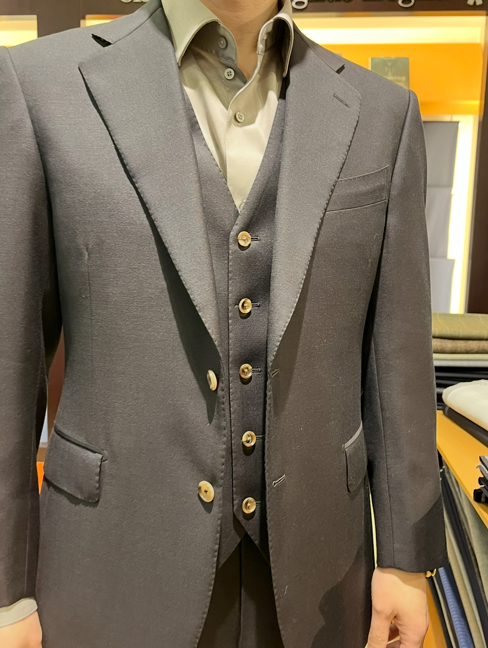 そして近年は円安もあり、イタリアやイギリスで100万円を超えるようなスーツがヴェスタでは1/3 程度の価格で手に入ることから、驚きとともにまとめ買いされる方も増えています。